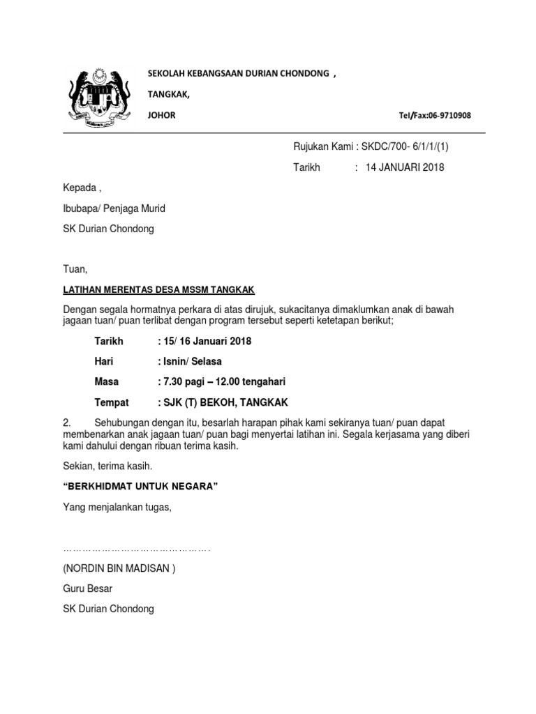 Contoh Surat Makluman Latihan Olahraga Pdf